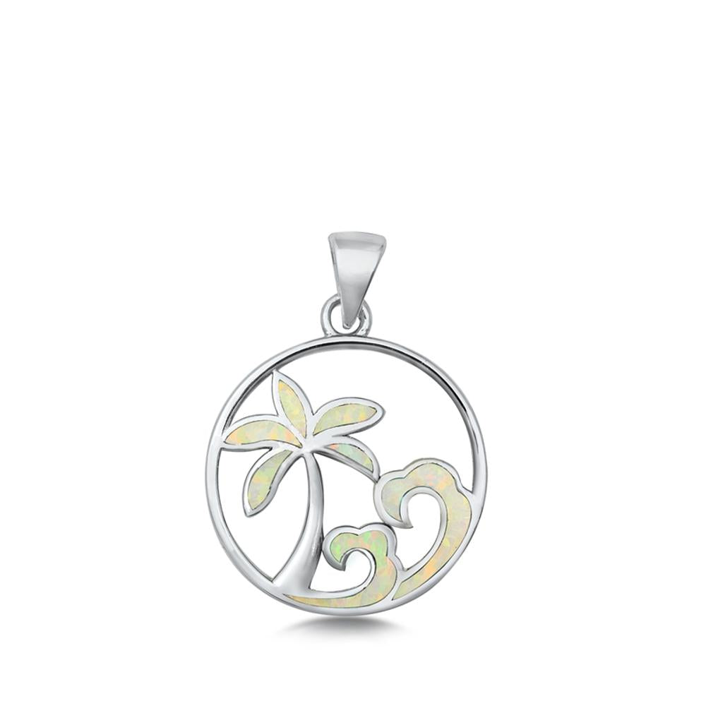 Sterling Silver White Synthetic Opal Palm Tree Ocean Pendant Island Charm 925