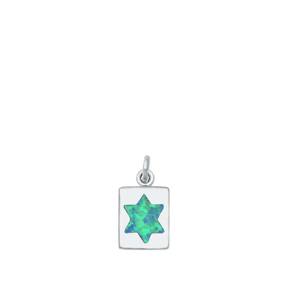 Sterling Silver Fashion Blue Synthetic Opal Star of David Pendant Jewish Charm