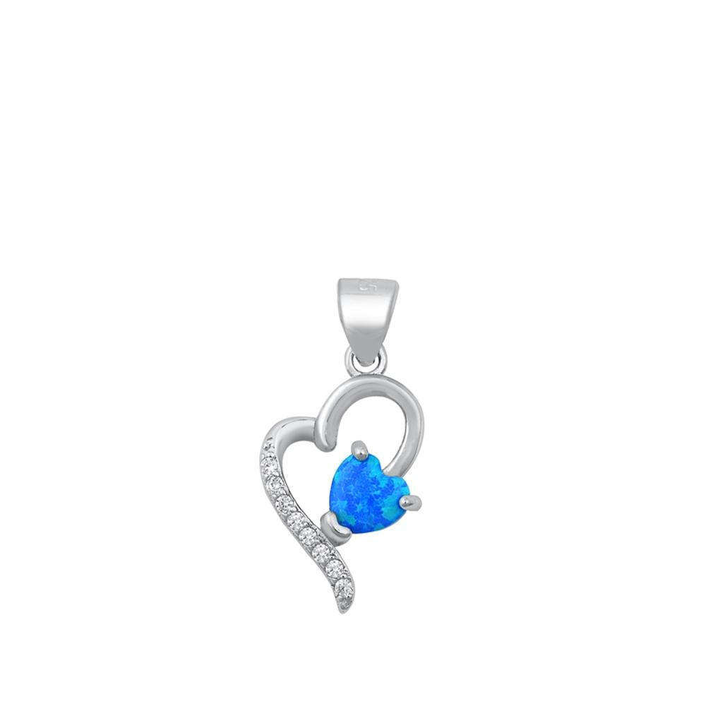 Sterling Silver Blue Synthetic Opal Swirl Heart Pendant Promise Love Charm 925