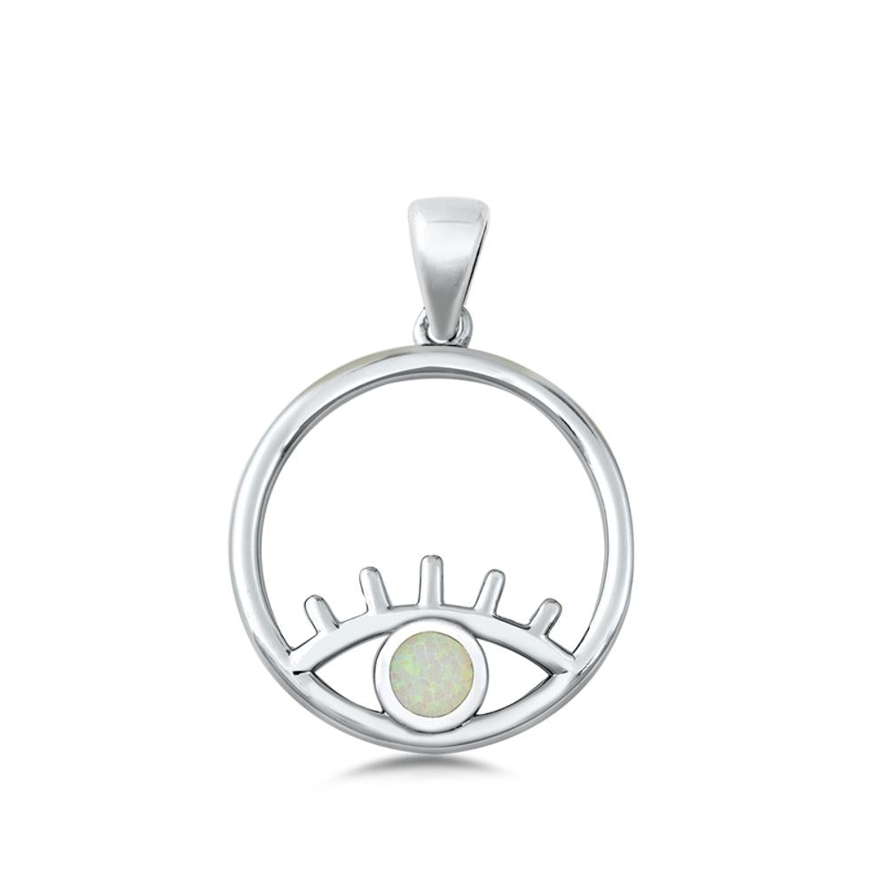 Sterling Silver White Synthetic Opal Eye Hoop Pendant Modern All Seeing Charm