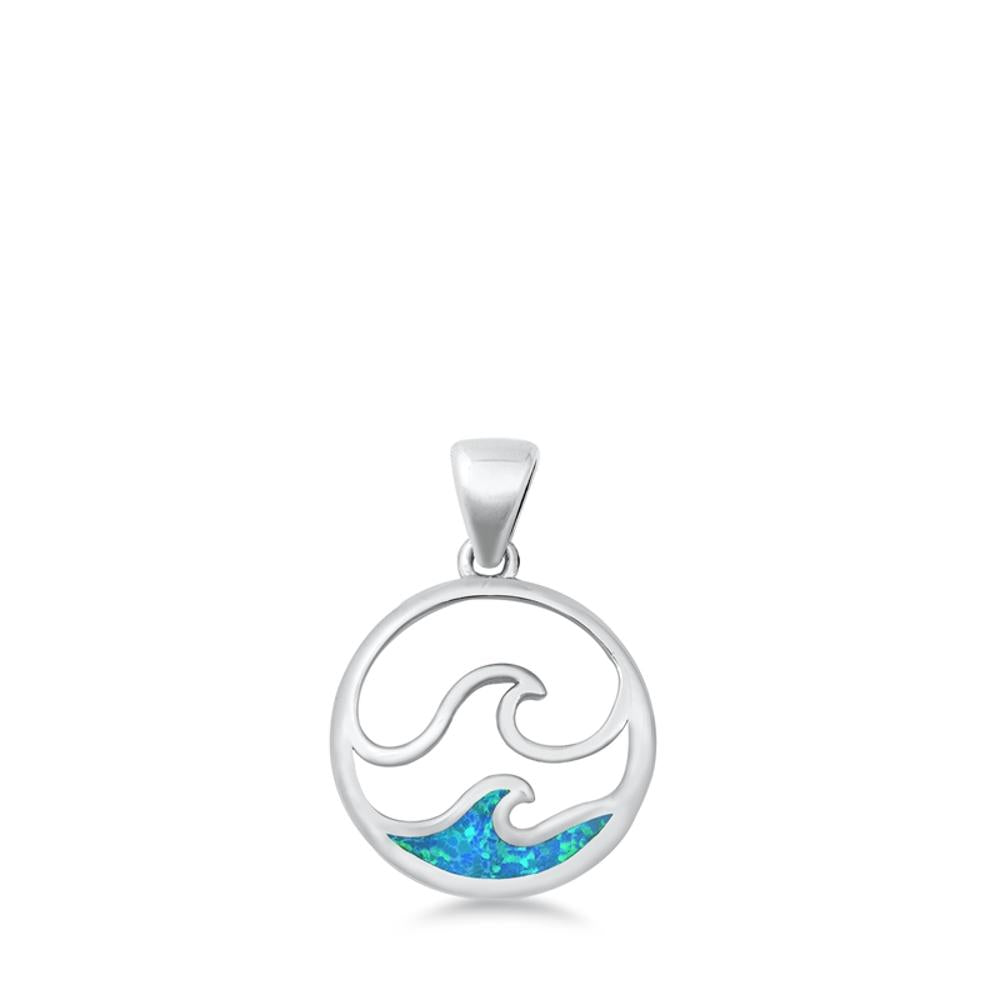 Sterling Silver Cute Blue Synthetic Opal Wave Pendant Beach Ocean Charm 925 New