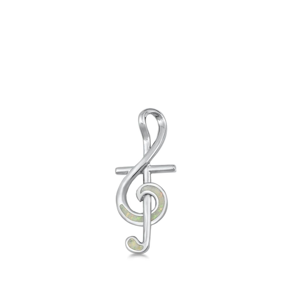 Sterling Silver Polished White Synthetic Opal Music Note Pendant Cross Charm 925