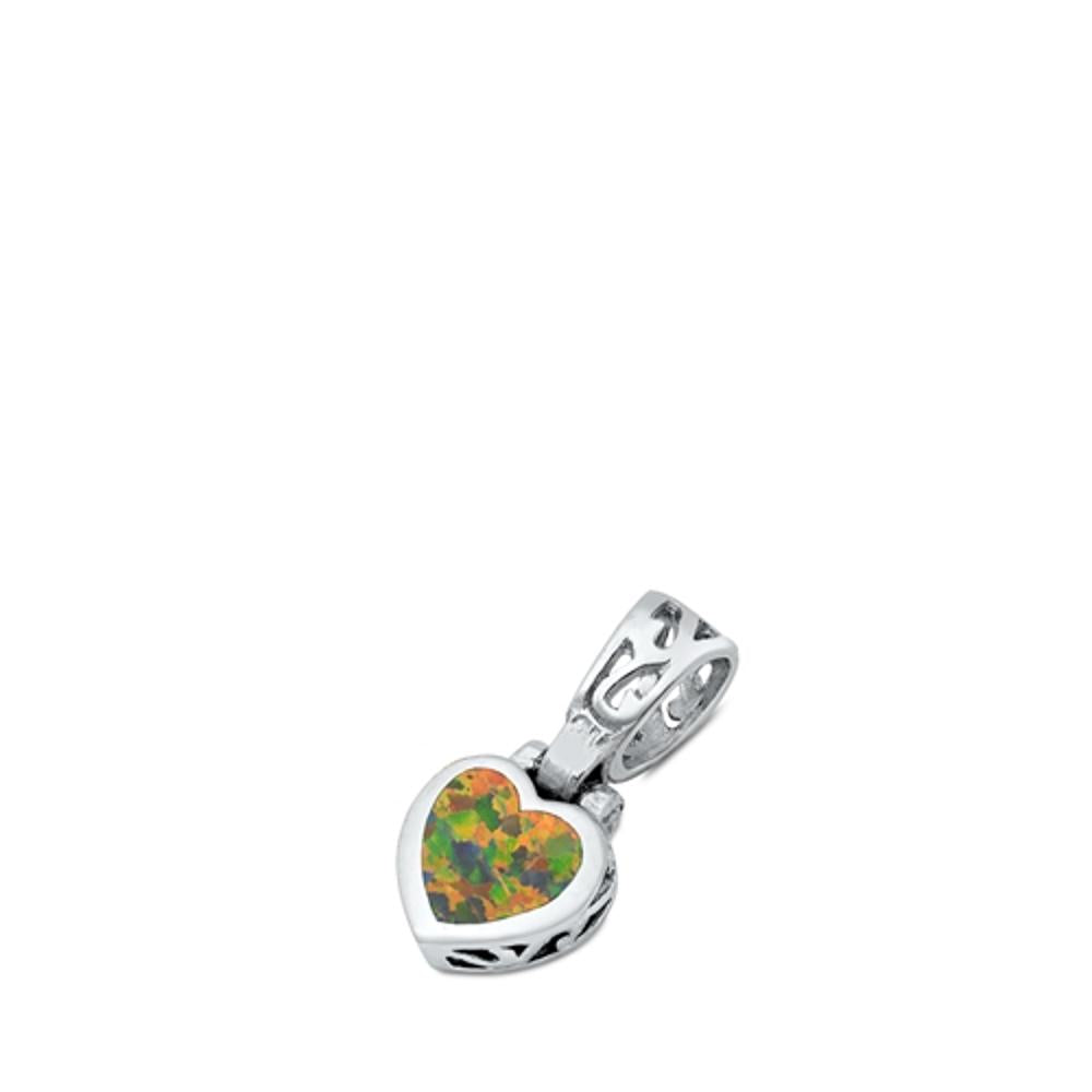 Sterling Silver Cute Mystic Synthetic Opal Heart Pendant Minimalist Love Charm