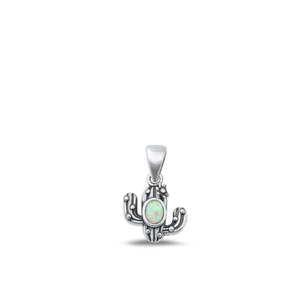 Sterling Silver Oxidized White Lab Opal Cactus Pendant Oxidized Charm .925 New
