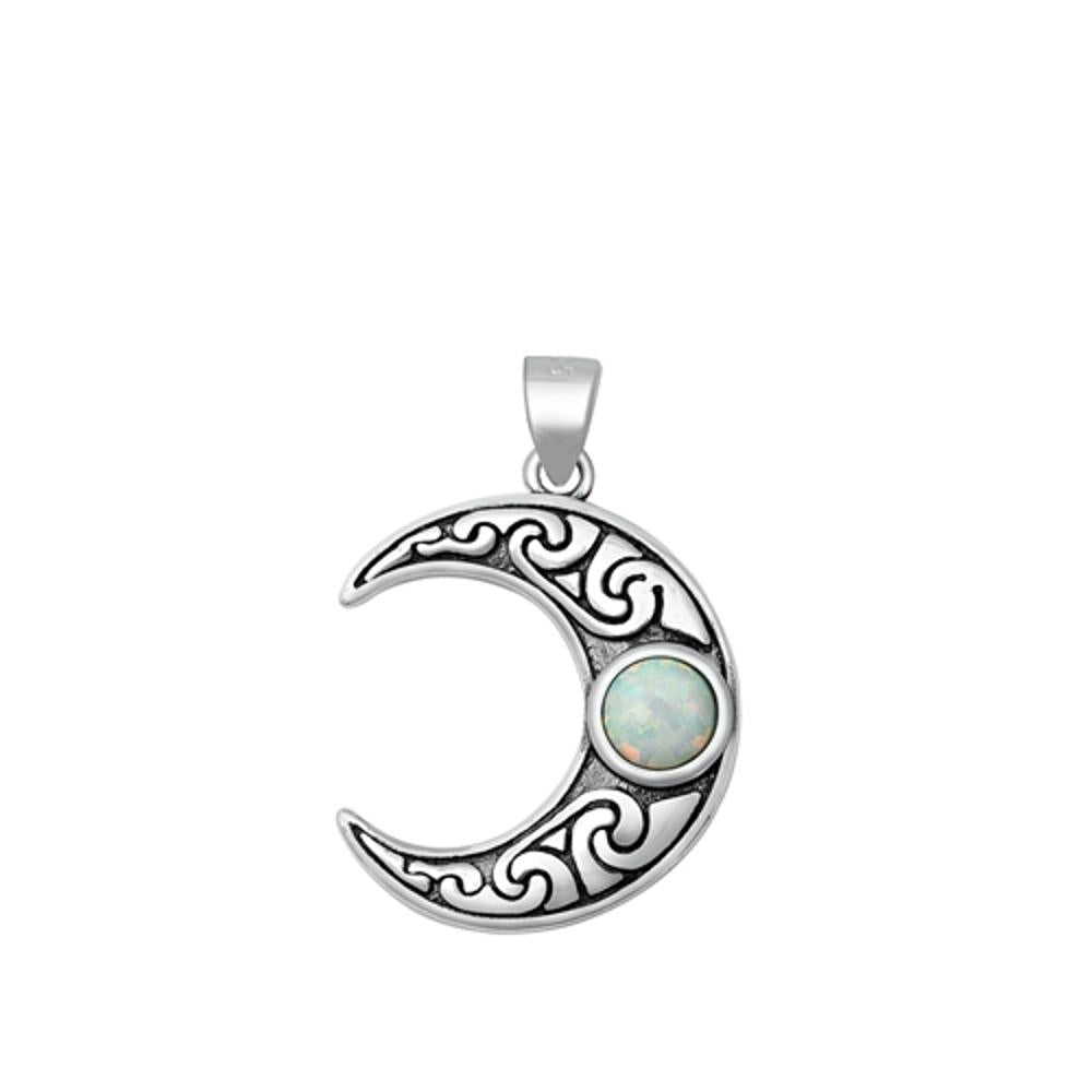 Sterling Silver Unique White Synthetic Opal Celtic Moon Pendant Love Charm 925