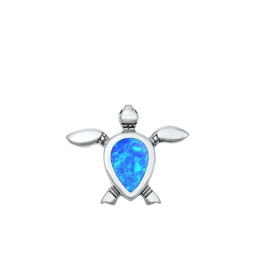 Sterling Silver Fashion Blue Lab Opal Sea Turtle Pendant Polished Charm .925 New