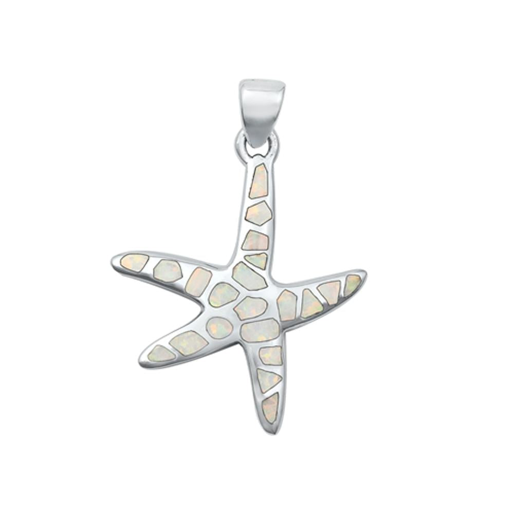 Sterling Silver Beautiful White Synthetic Opal Starfish Pendant Charm .925 New