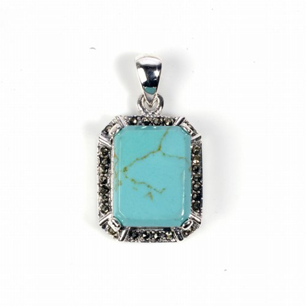 Sterling Silver Turquoise Marcasite Pendant Frame Geometric Classic Charm 925