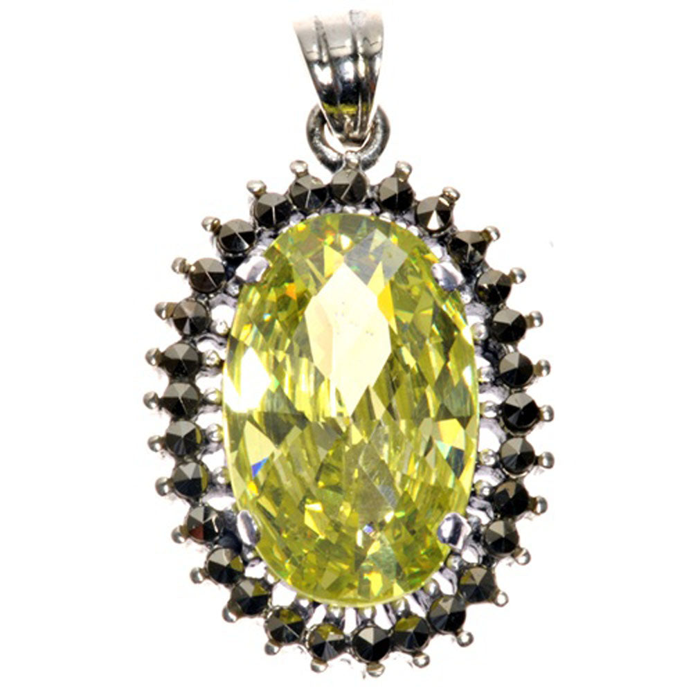 Ornate Burst Oval Pendant Yellow Simulated CZ .925 Sterling Silver Fancy Charm
