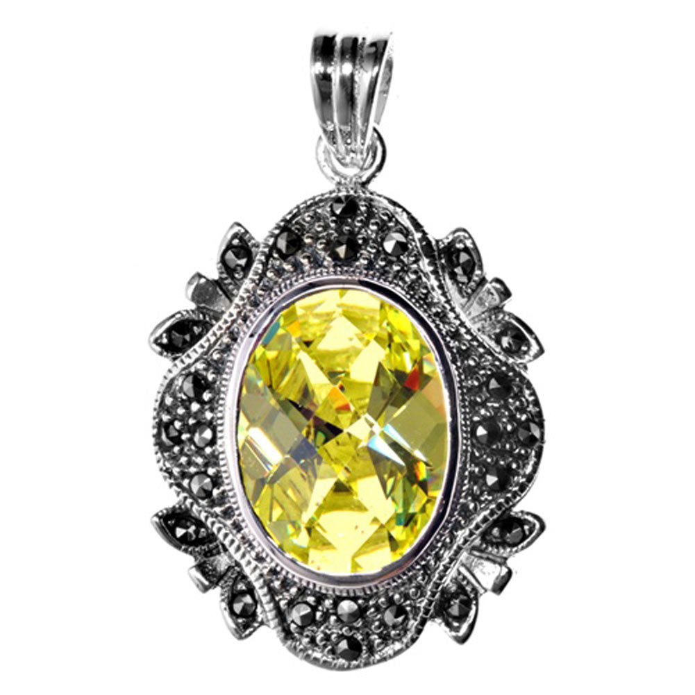Victorian Studded Oval Pendant Yellow Simulated CZ .925 Sterling Silver Charm