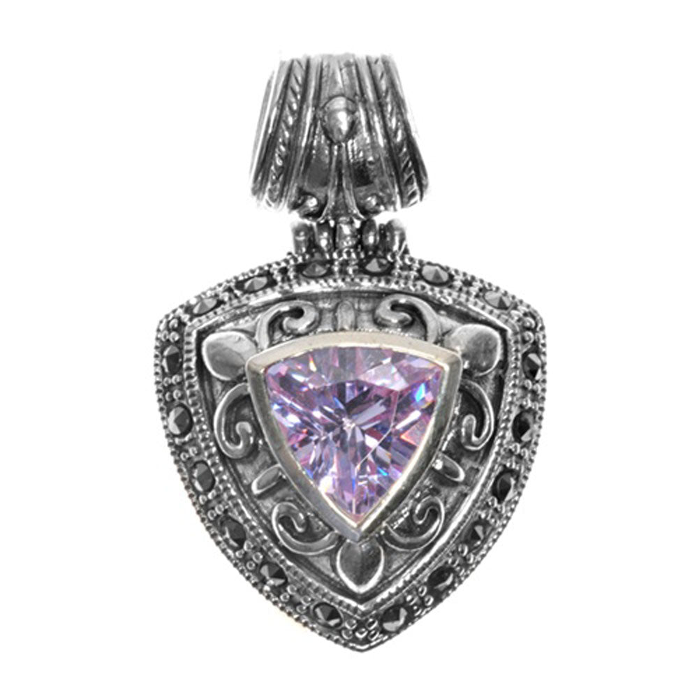 Medieval Shield Pendant Simulated Lavender .925 Sterling Silver Ornate Charm