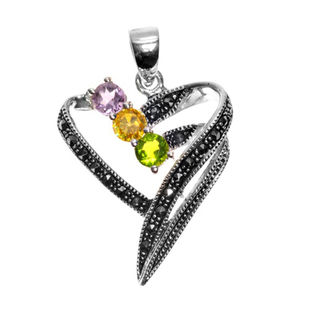 Double Loop Heart Pendant Simulated Lavender .925 Sterling Silver Studded Charm
