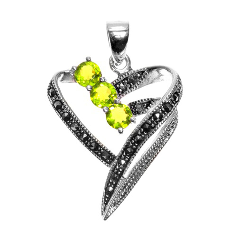 Sterling Silver Studded Double Promise Heart Pendant Simulated Peridot Charm