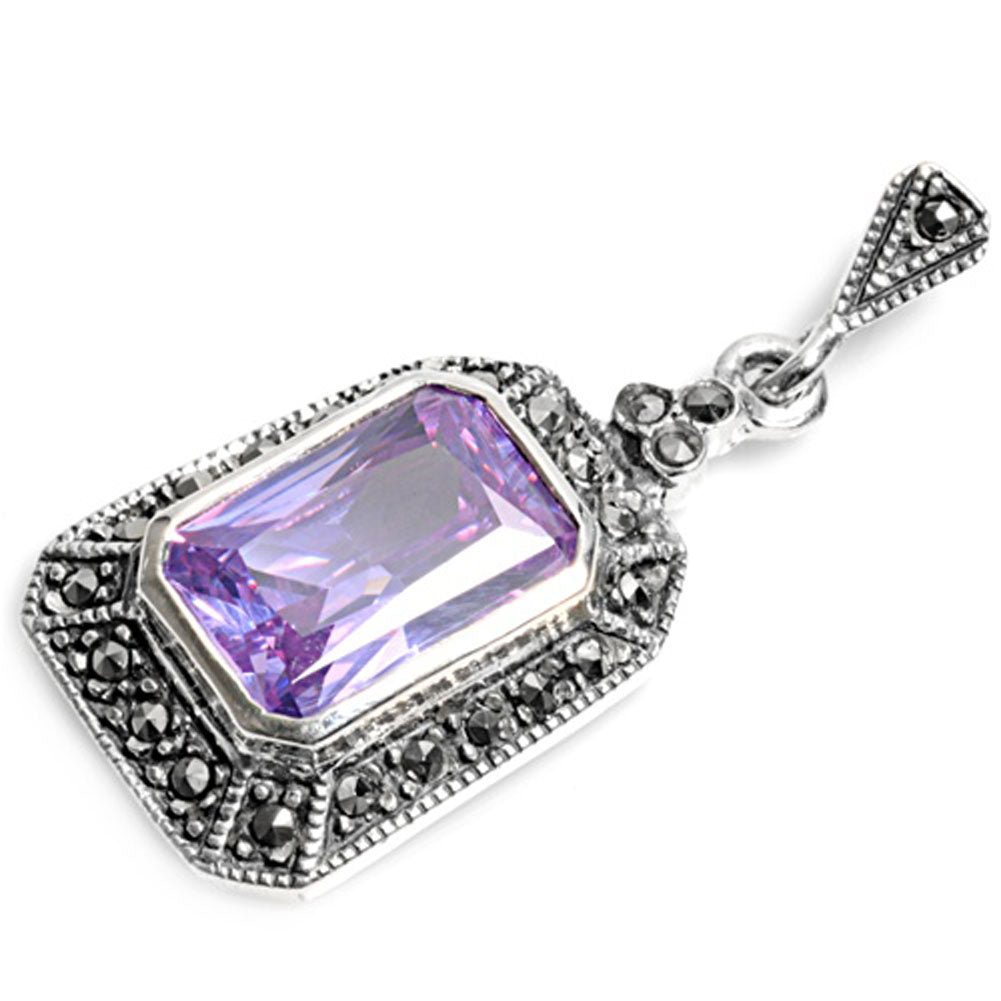 Sterling Silver Vintage Bali Style Rectangle Pendant Simulated Lavender Charm