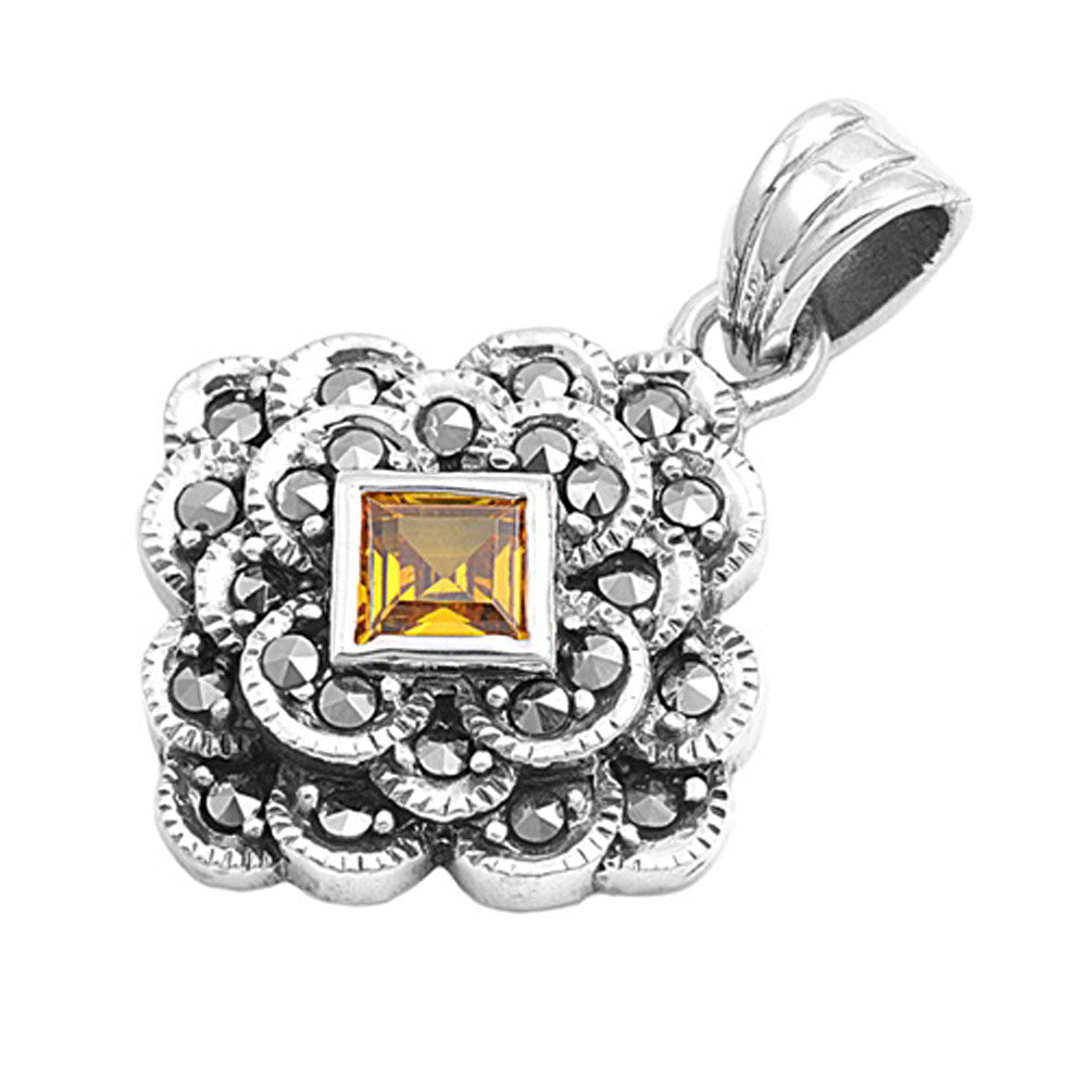 Sterling Silver Scalloped Geometric Flower Pendant Yellow Simulated CZ Charm