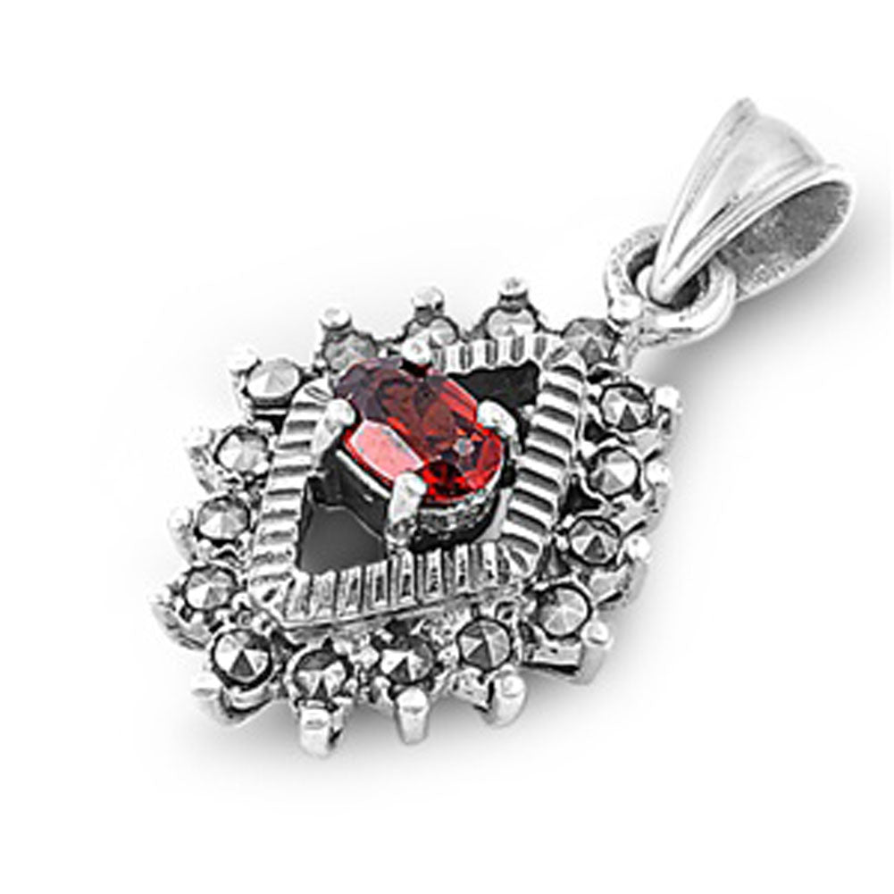 Gothic Pendant Simulated Garnet Simulated Marcasite .925 Sterling Silver Charm