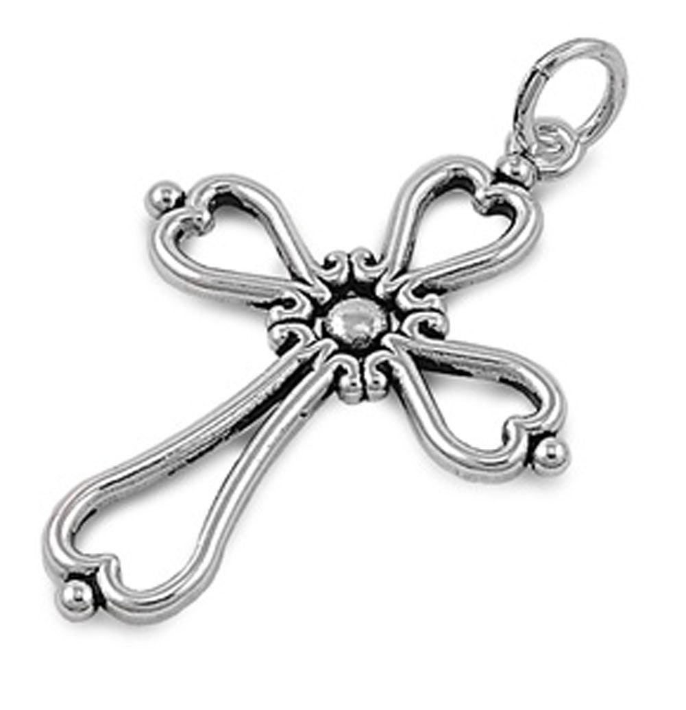 Elongated Heart Ornate Filigree Swirl Cross Pendant .925 Sterling Silver Charm