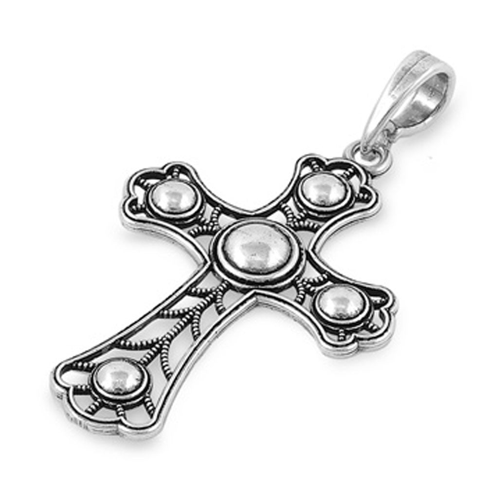 Vintage Detailed Cross Pendant .925 Sterling Silver Oxidized Rope Cutout Charm