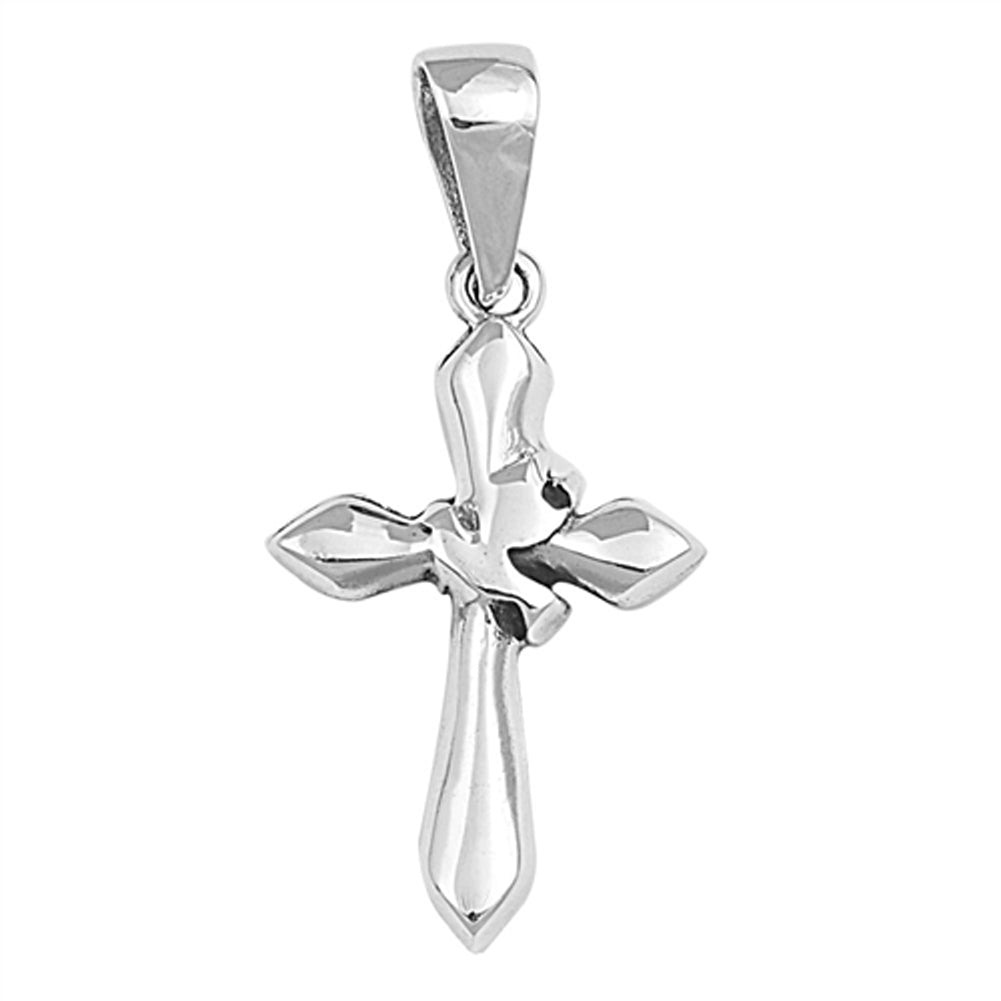 Simple High Polish Dove Cross Pendant .925 Sterling Silver Classic Charm