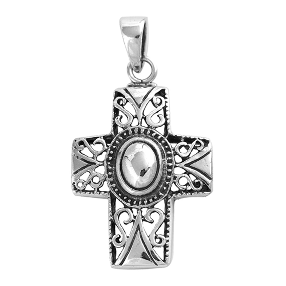 Victorian Style Filigree Cross Pendant .925 Sterling Silver Scroll Bead Charm