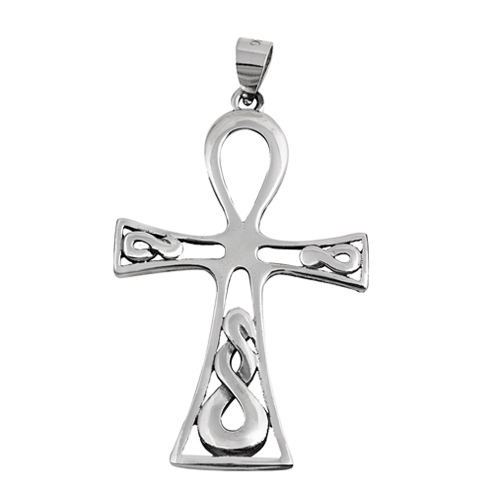 Sterling Silver Ornate Ankh Cross Pendant Loop Infinity Knot Open Charm 925 New
