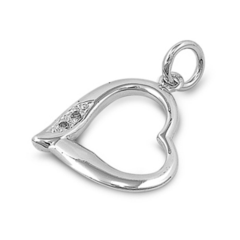 Studded Promise Heart Pendant .925 Sterling Silver High Polish Shiny Charm
