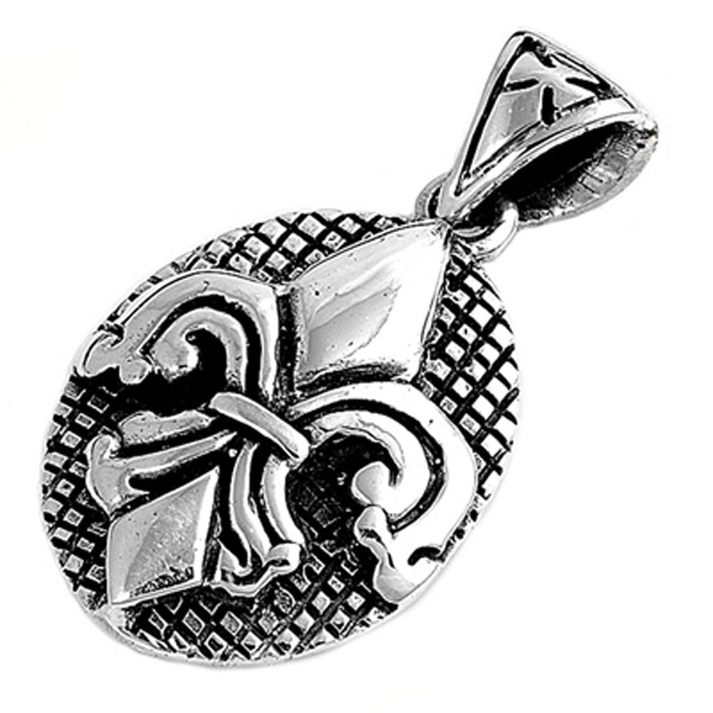 Fleur De Lis Medallion Pendant .925 Sterling Silver Cross Hatch French Charm