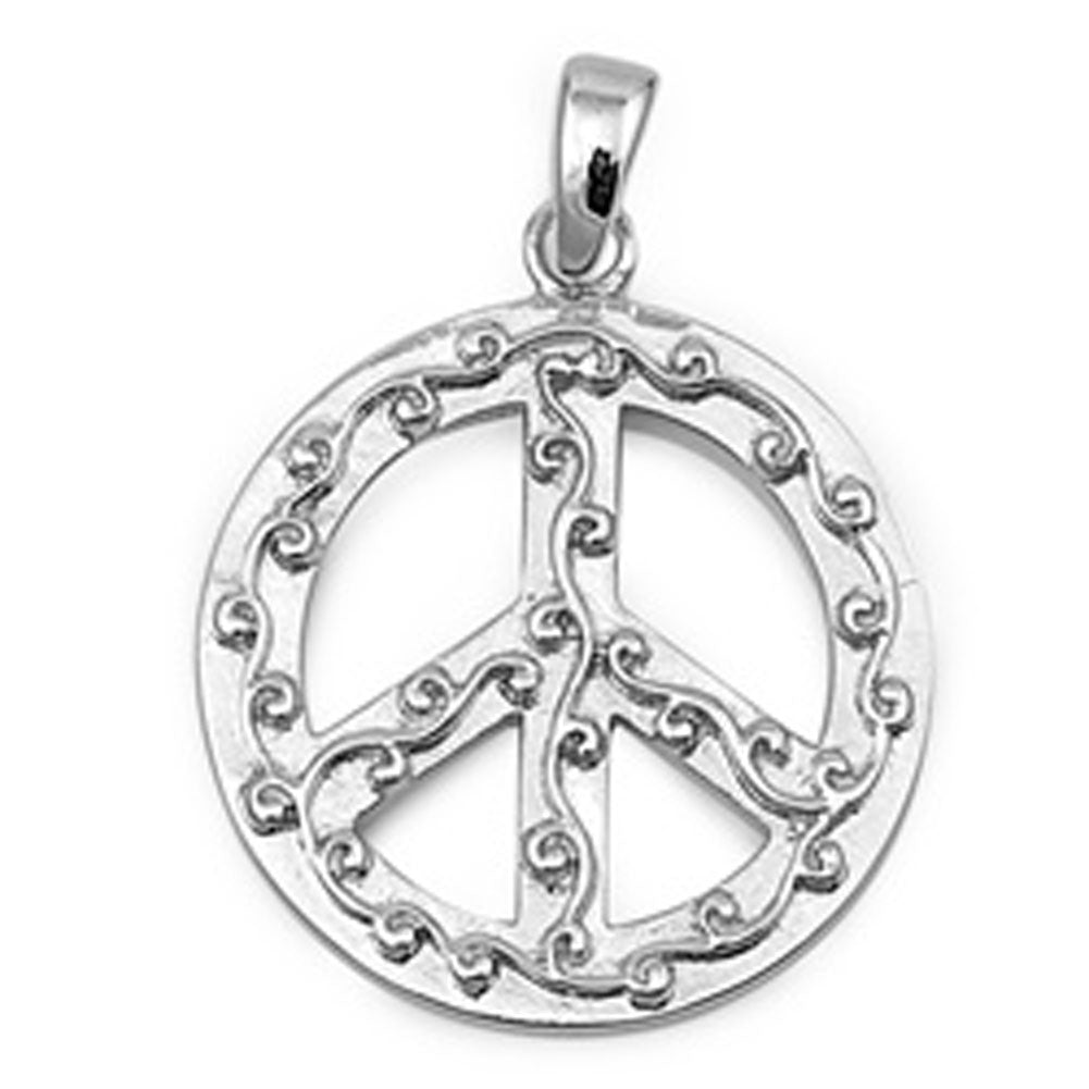 Filigree Swirl Peace Sign Pendant .925 Sterling Silver Vine Leaf Spiral Charm