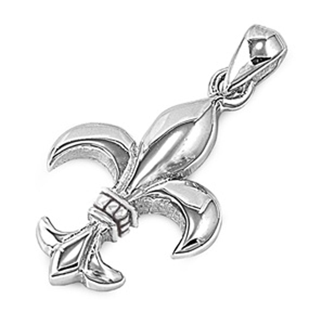 Lily Flower Fleur De Lis Pendant .925 Sterling Silver French Symbol Charm