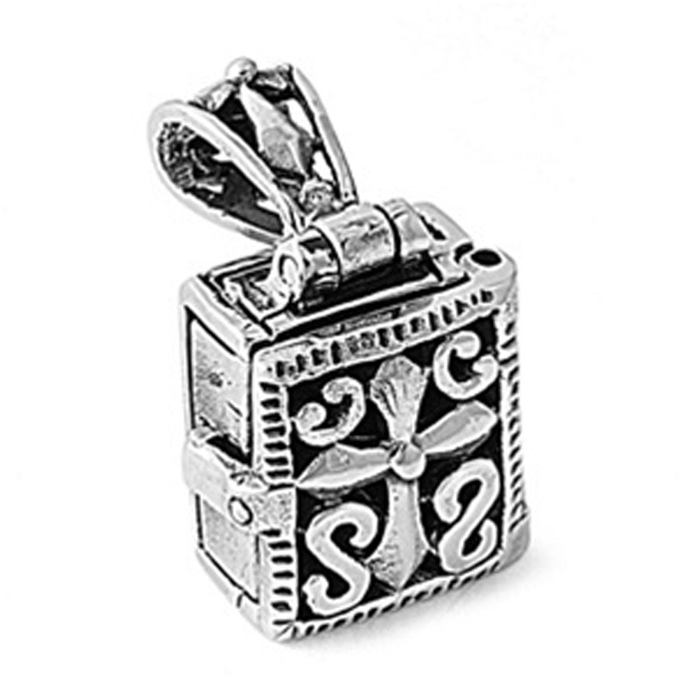 Sterling Silver Ornate Oxidized Detail Filigree Cross Prayer Box Pendant Charm