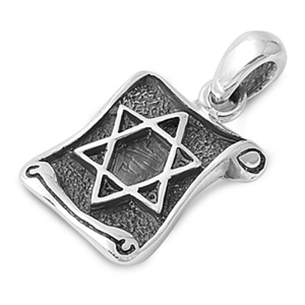 Oxidized Scroll Star of David Pendant .925 Sterling Silver Ancient Symbol Charm
