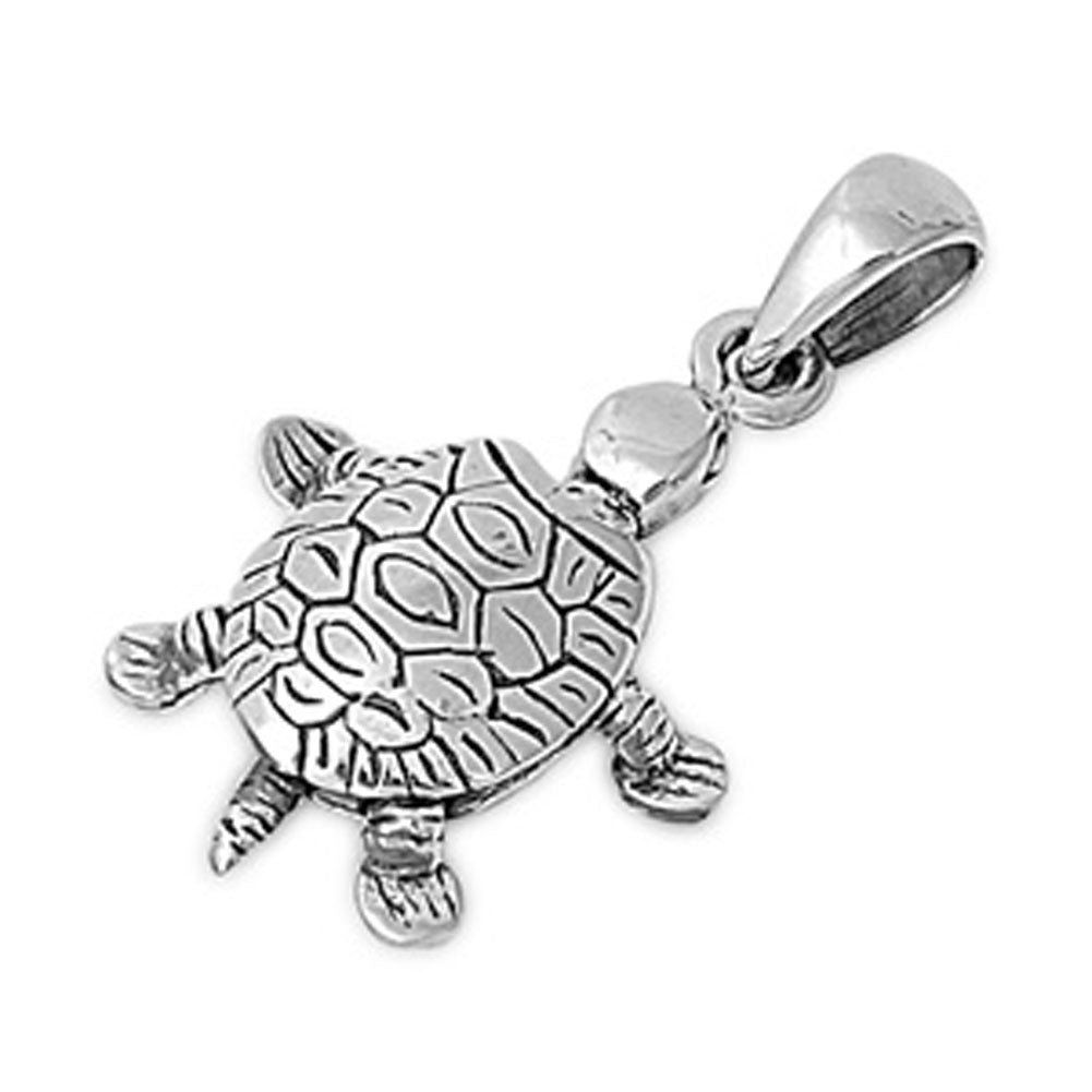 Detailed Animal Realistic Turtle Pendant .925 Sterling Silver Ocean Swim Charm