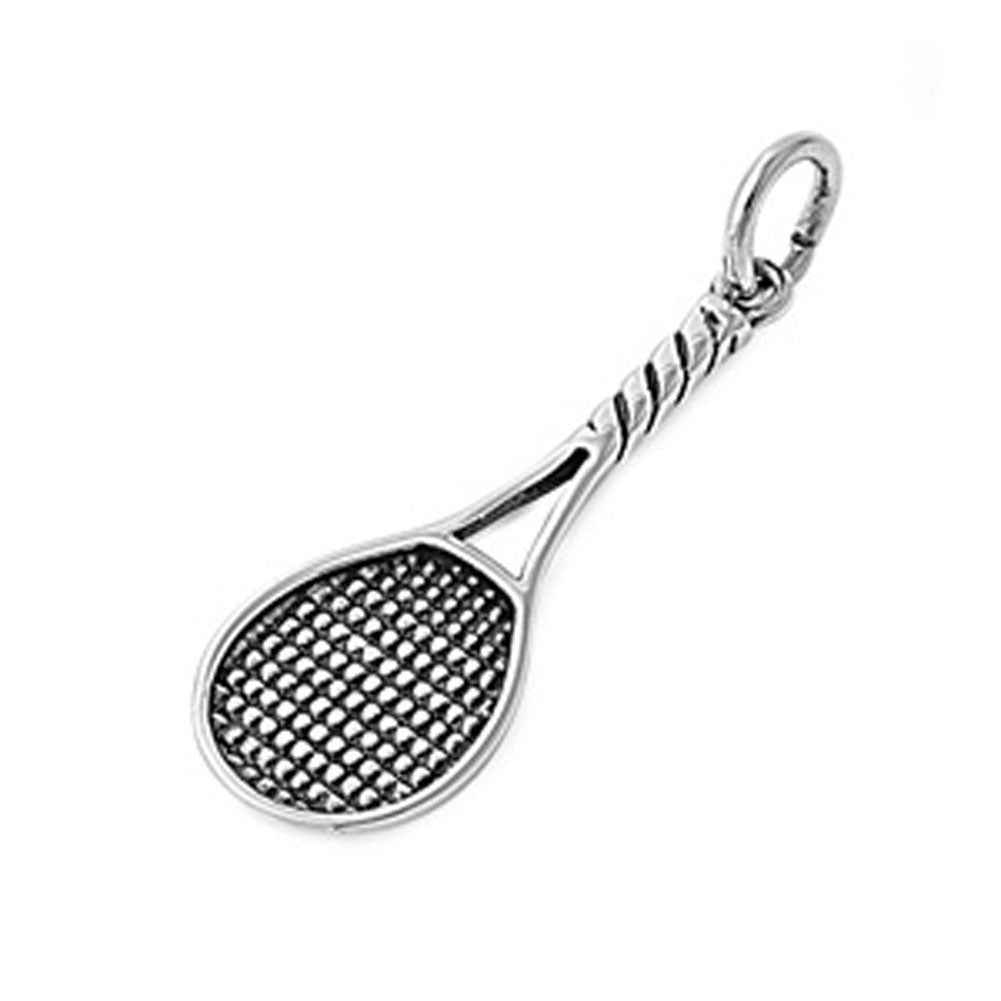 Oxidized Net Tennis Racket Pendant .925 Sterling Silver Twisted Knot Sport Charm