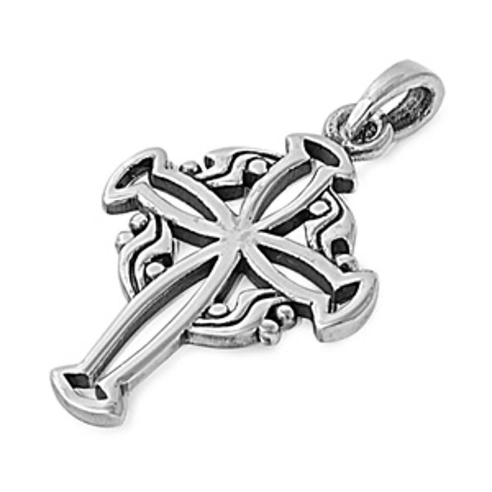 Cutout Ornate Vintage Cross Pendant .925 Sterling Silver Open Bead Charm