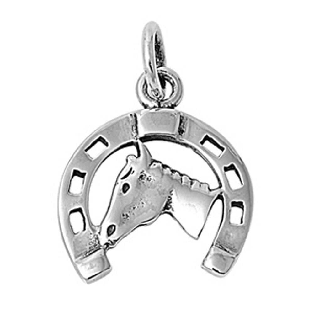 Horseshoe High Polish Horse Head Pendant .925 Sterling Silver Racing Lucky Charm