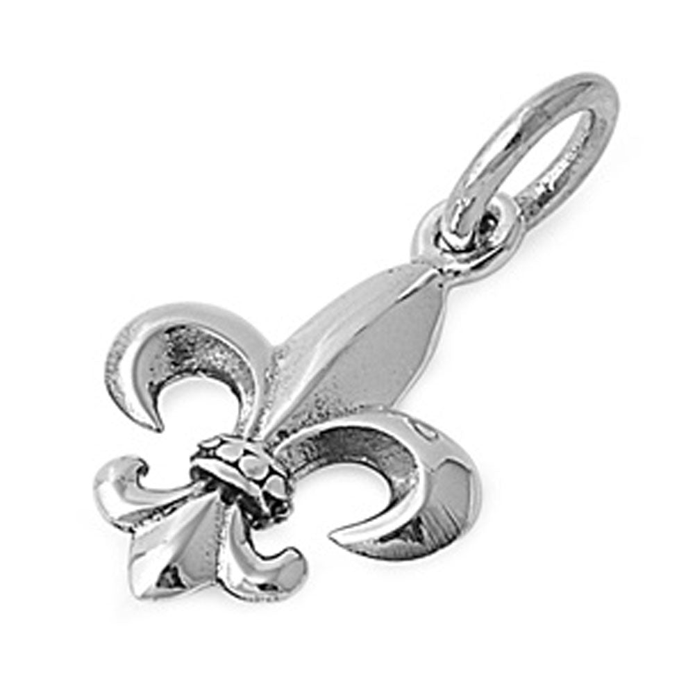 High Polish Fleur De Lis Pendant .925 Sterling Silver Shiny Lily Flower Charm