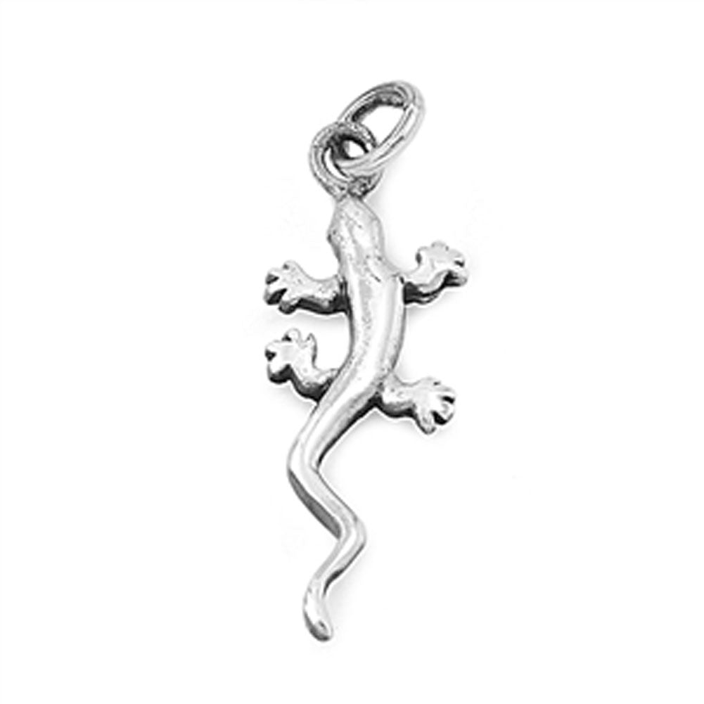 Elegant Climbing Lizard Pendant .925 Sterling Silver Gecko Iguana Animal Charm