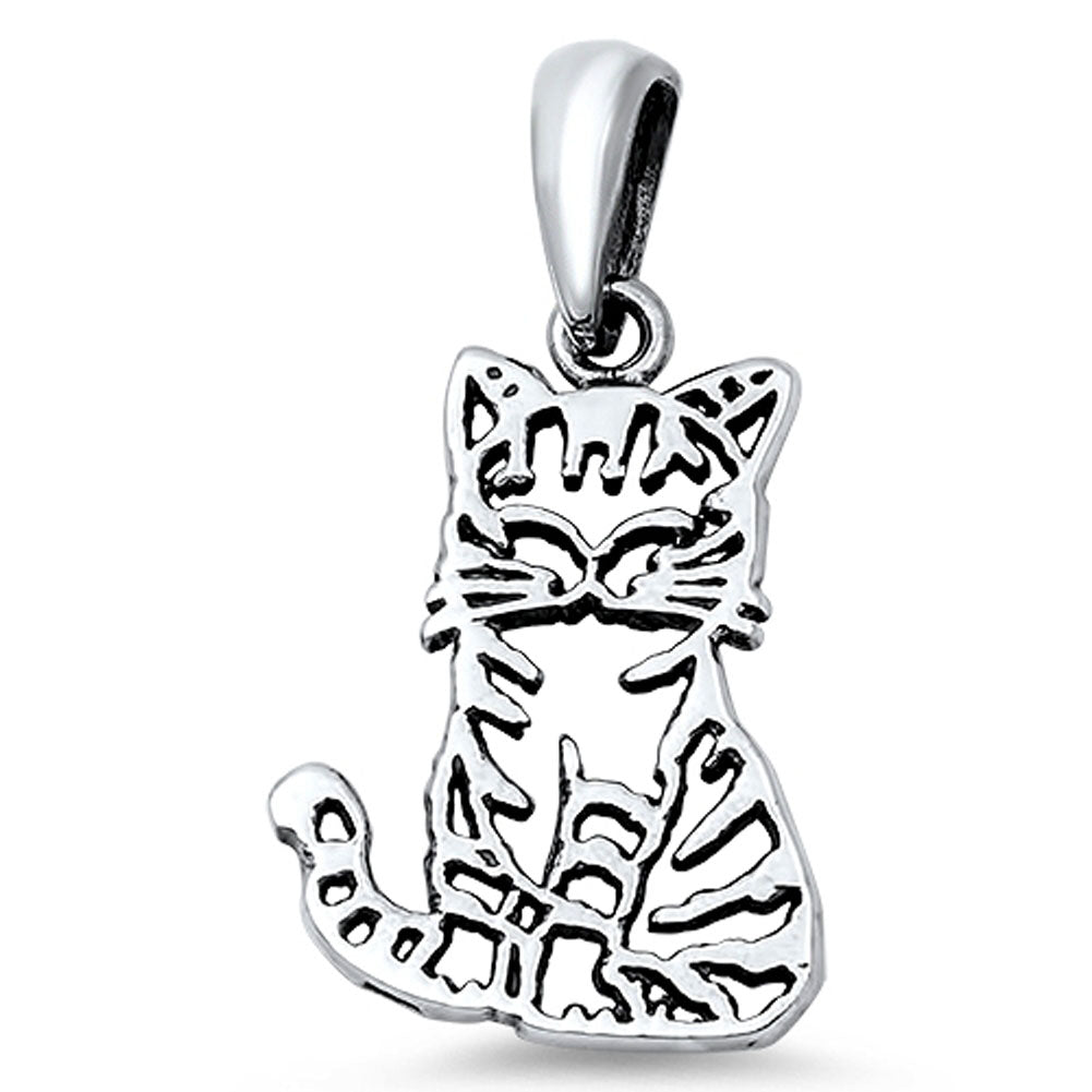 Cutout Cat Pendant .925 Sterling Silver Outline Kitten Animal Pet Cute Charm