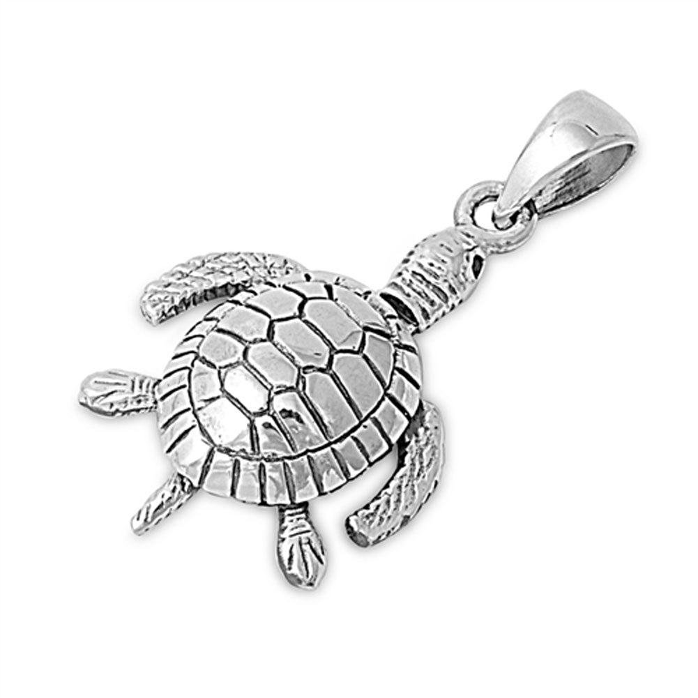 Realistic Detailed Turtle Pendant .925 Sterling Silver Sea Ocean Animal Charm