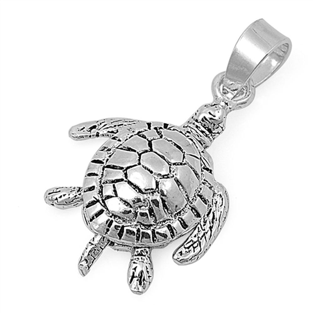 Detailed Realistic Turtle Pendant .925 Sterling Silver Animal Nature Sea Charm