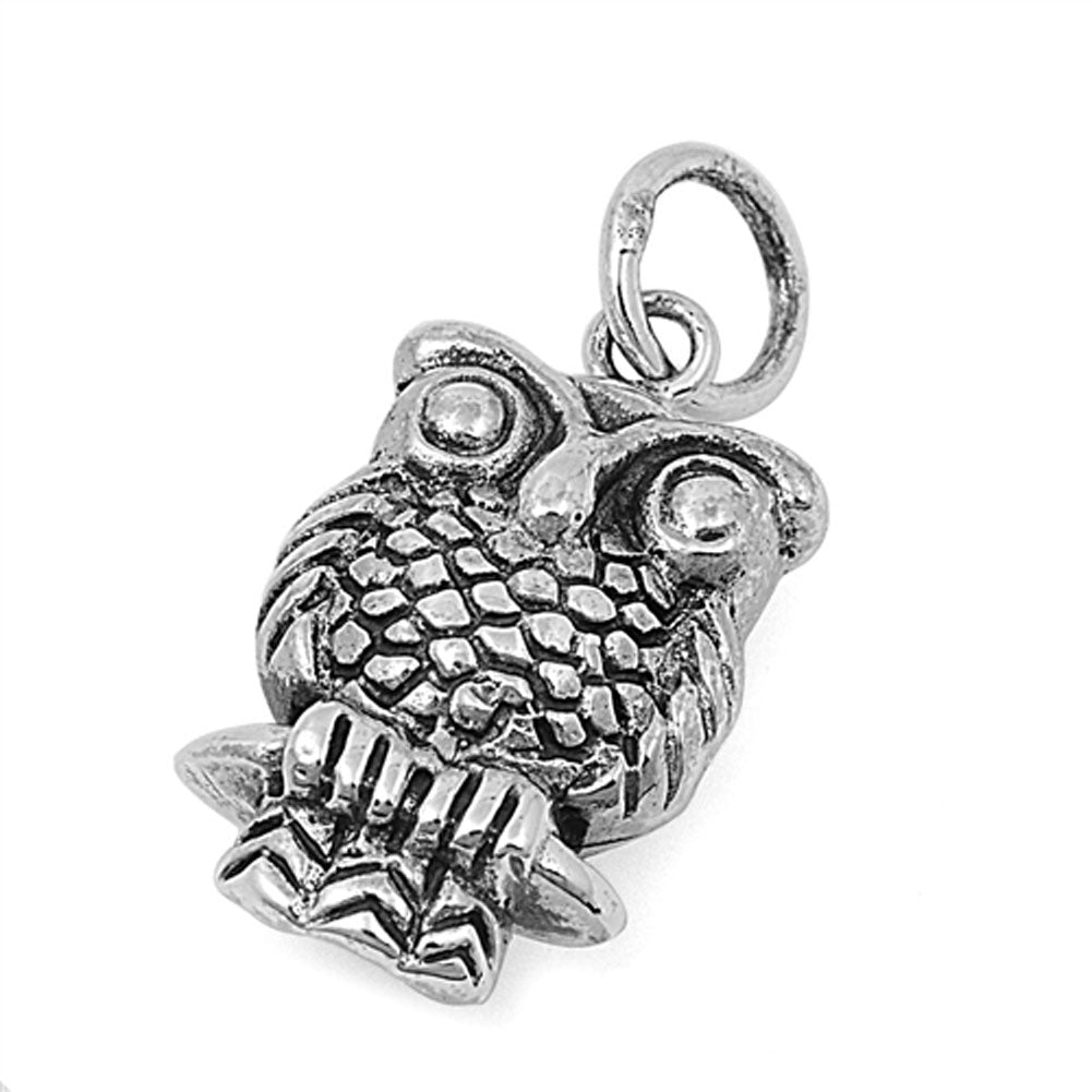 Detailed Scalloped Owl Pendant .925 Sterling Silver Feather Animal Nature Charm