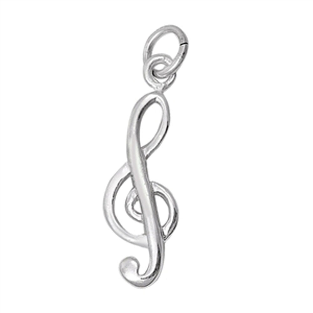 Elegant Spiral Music Note Pendant .925 Sterling Silver Treble Clef Charm