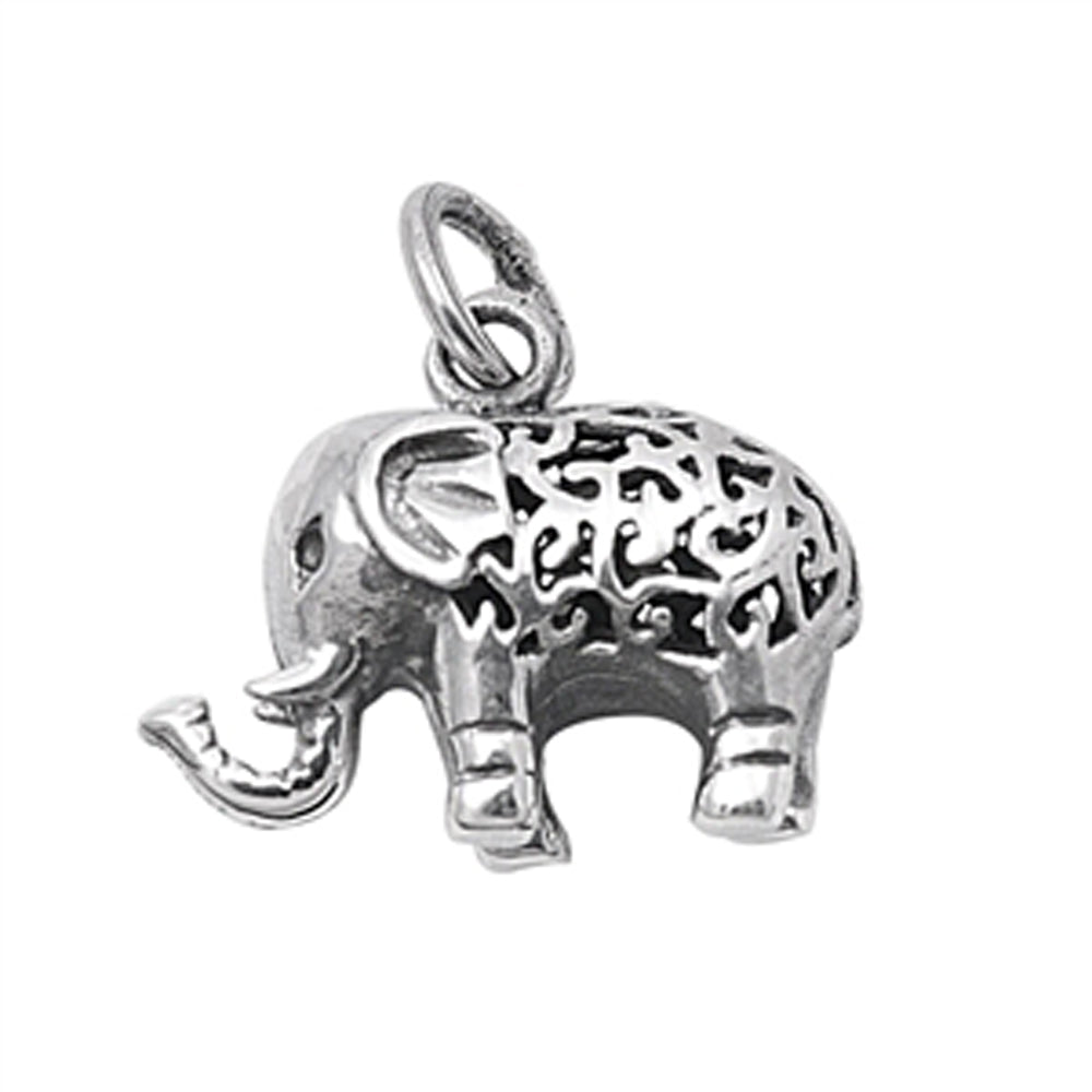 Sterling Silver Cute Elephant Pendant Filigree Swirl Cage Animal Bali Charm 925