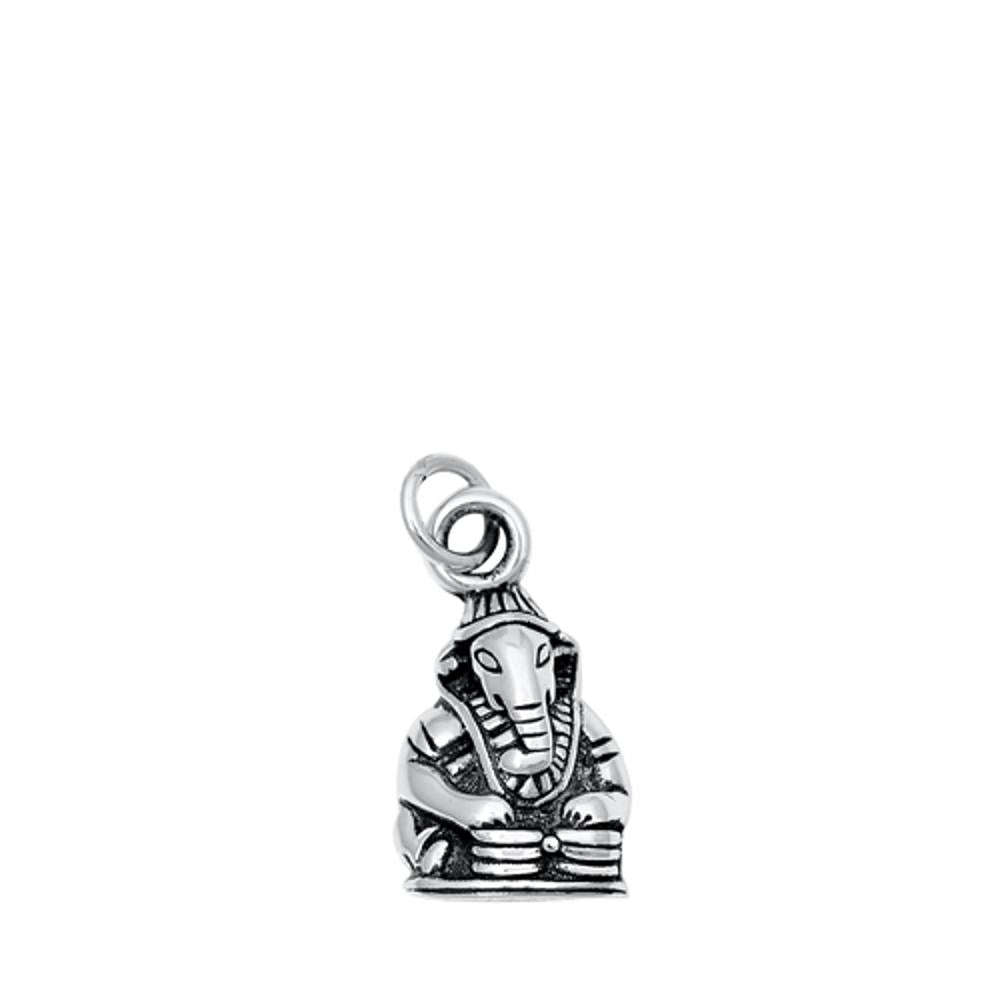Hindu Detailed Ganesha Elephant Pendant .925 Sterling Silver Animal Deity Charm
