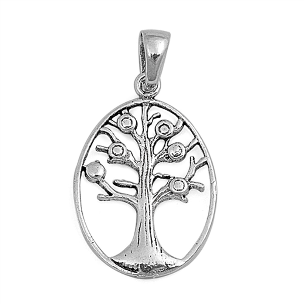 Modern Tree of Life Hoop Pendant .925 Sterling Silver Branch Fruit Oval Charm