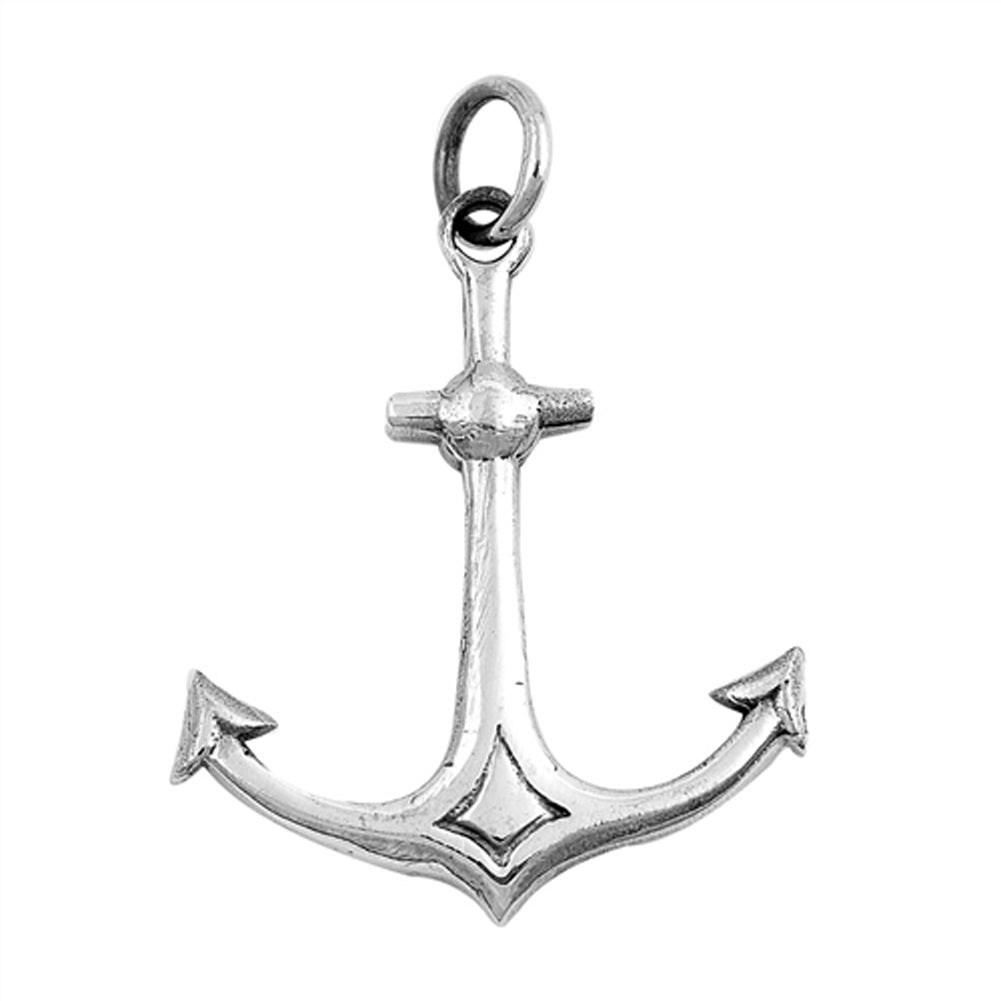 Sailor Elegant Elongated Anchor Pendant .925 Sterling Silver Ship Marine Charm