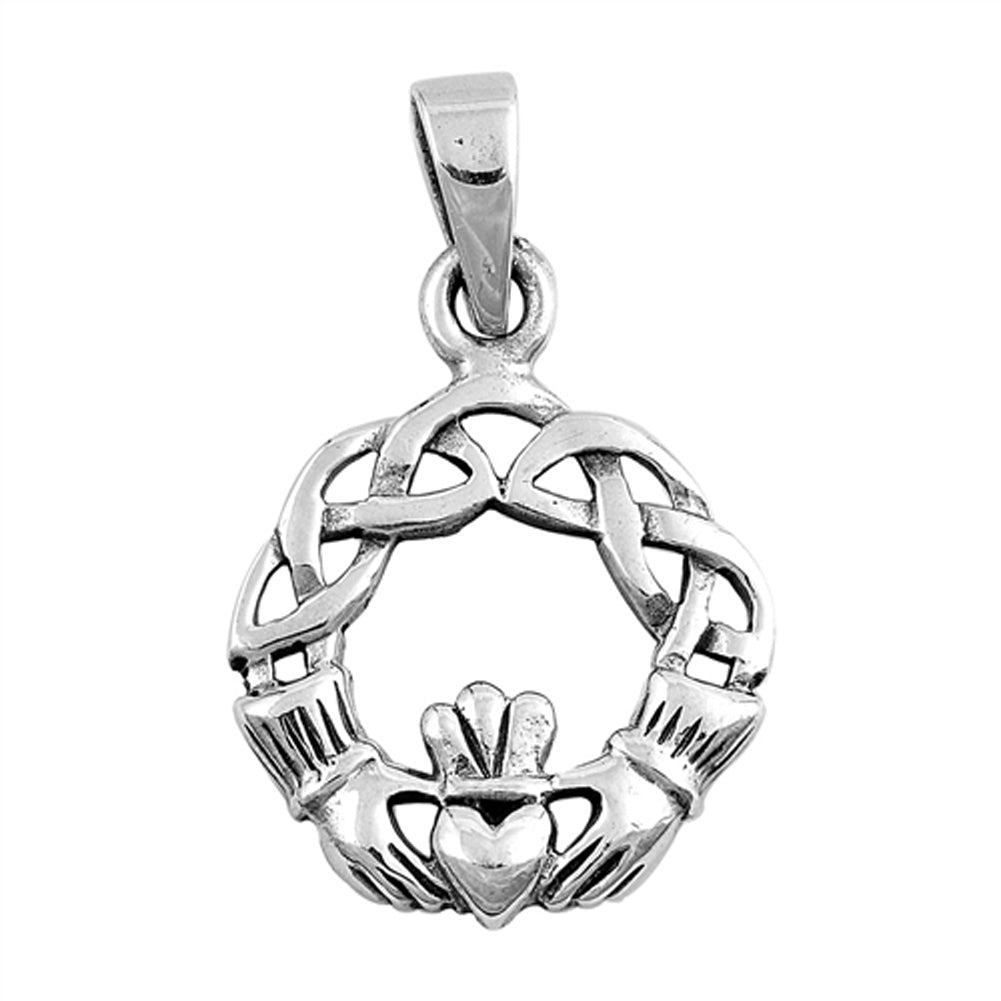Knot Celtic Braid Claddagh Pendant .925 Sterling Silver Twist Hand Crown Charm