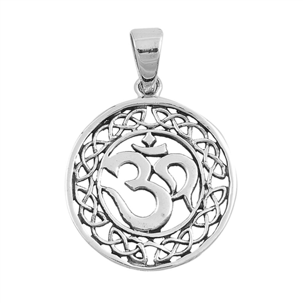 Medallion Om Celtic Knot Pendant .925 Sterling Silver Weave Braid Eternity Charm