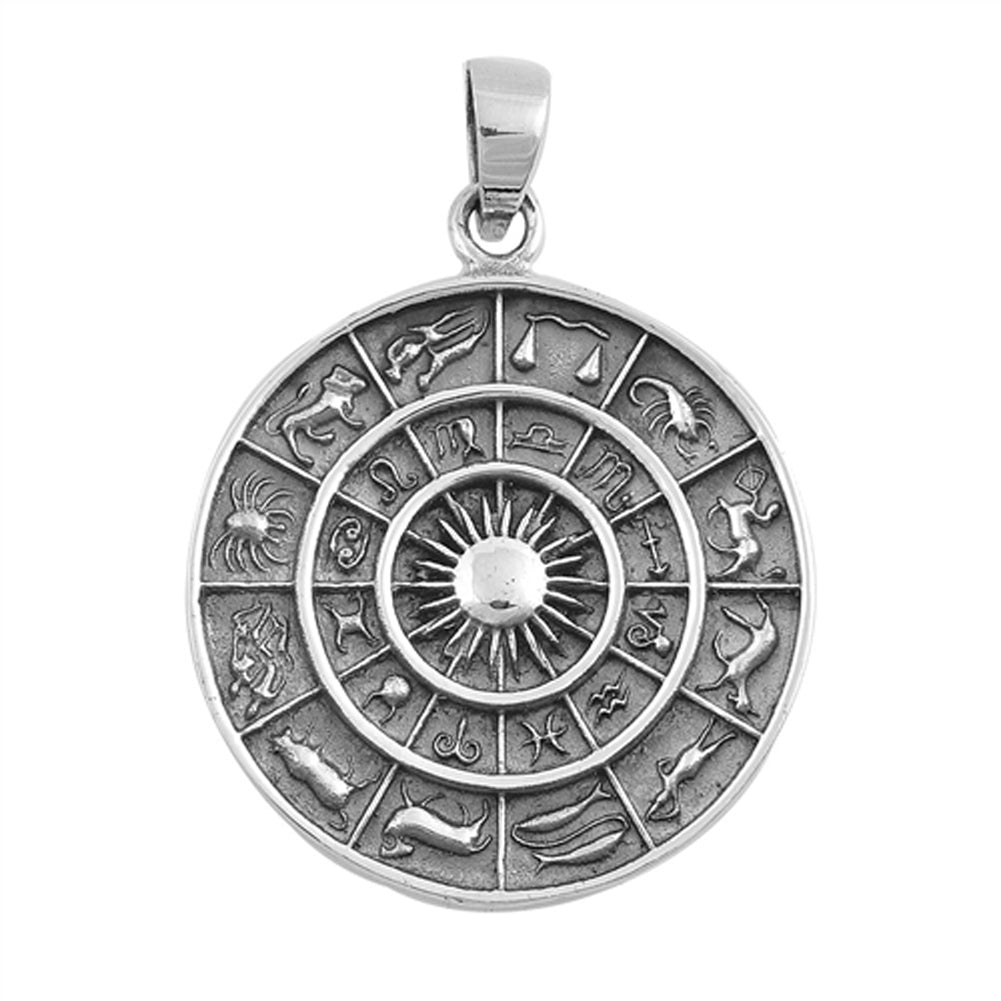 Circle Zodiac Calendar Medallion Pendant .925 Sterling Silver Animal Charm