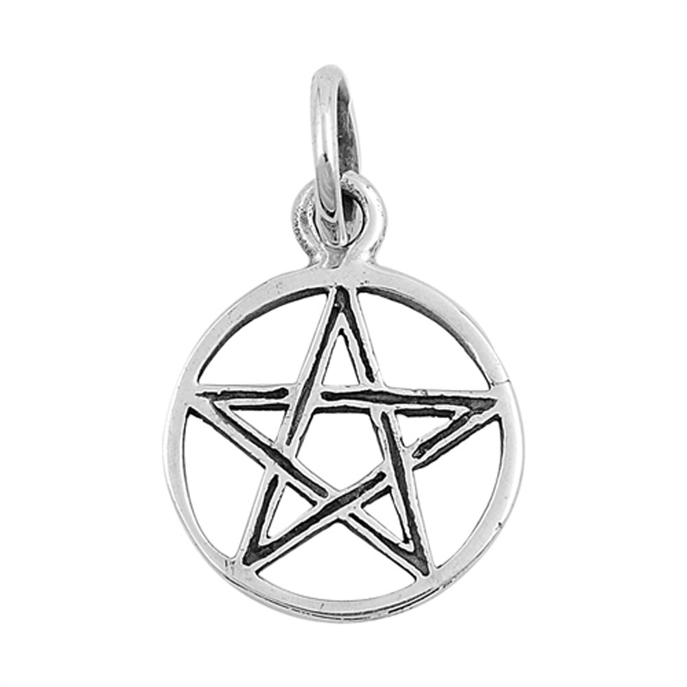 Star Pentagram Pendant .925 Sterling Silver Satanic Devil Circle Charm